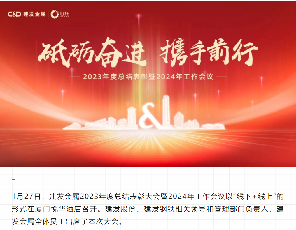 砥礪奮進(jìn),攜手前行| 建發(fā)金屬召開2023年度總結(jié)表彰大會(huì)暨2024年工作會(huì)議