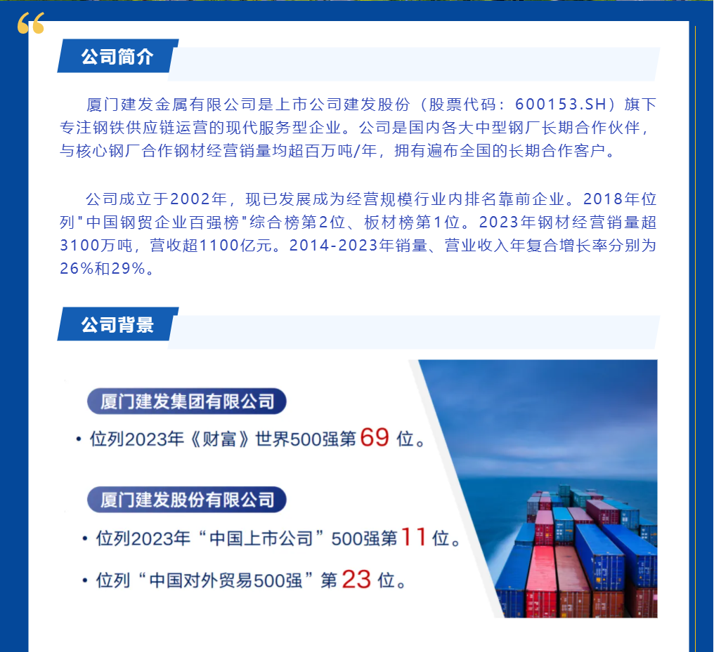 再登榜首 | 建發金屬榮登“2024年全國鋼貿企業百強榜-金屬板材榜”第一