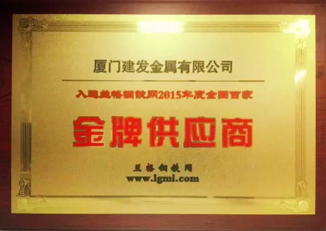 在蘭格鋼鐵網的主持下,經過數輪謹慎、公正評選,"蘭格鋼鐵網金牌供應商TOP100"評選結果終于塵埃落定。建發金屬公司憑借專業服務、守信經營,獲評蘭格金牌供應商TOP100,并受頒牌匾和證書,這已是建發金屬公司連續第二次入選該榜單。此次入選的企業都是具有一定規模和實力,供應正品材,價格實惠,準斤足量、服務到位的企業,具備較高的行業權威性和認可度。