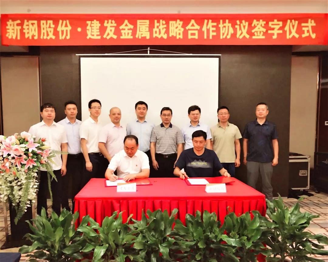 2018年8月4日上午,新鋼股份與建發金屬戰略合作協議簽訂儀式在長沙舉行,新鋼股份總經理助理肖忠東、廈門建發金屬公司總經理張清華分別代表雙方簽訂戰略合作協議。新鋼股份、建發金屬公司有關人員參加了戰略合作協議簽字儀式。
