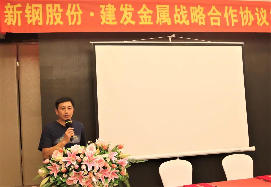新鋼股份總經理助理肖忠東在致辭中表示,新鋼股份與建發金屬合作時間雖然不長,但是在較短時間內,雙方合作業務范圍不斷拓展,合作友誼不斷加深。今年是新鋼股份建廠六十周年,在新鋼股份六十年的發展過程中,離不開包括建發金屬在內的合作伙伴的大力支持和幫助。這次戰略合作協議的簽訂,標志著雙方合作提升到了一個新的水平,邁上了一個新的臺階。
