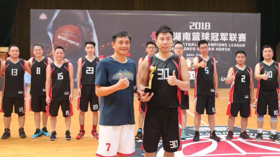 (張清華為新鋼股份籃球隊頒發冠軍獎杯)