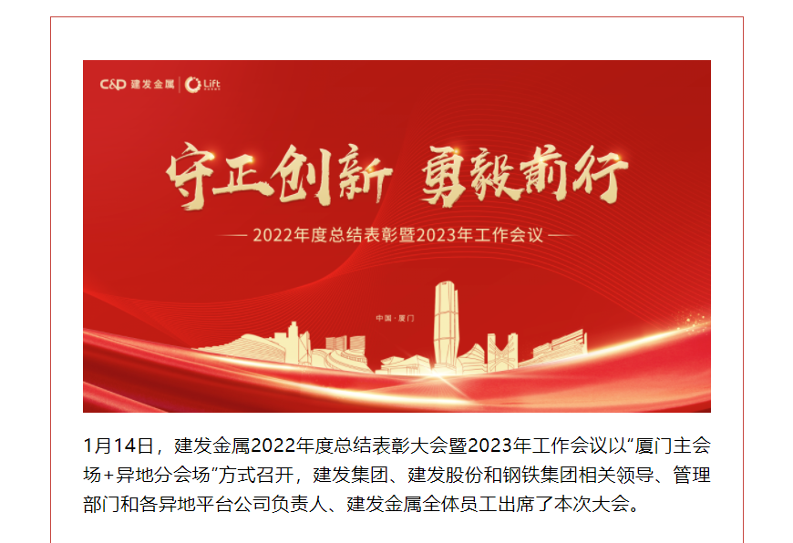守正創新 勇毅前行 | 建發金屬召開2022年度總結表彰大會暨2023年工作會議