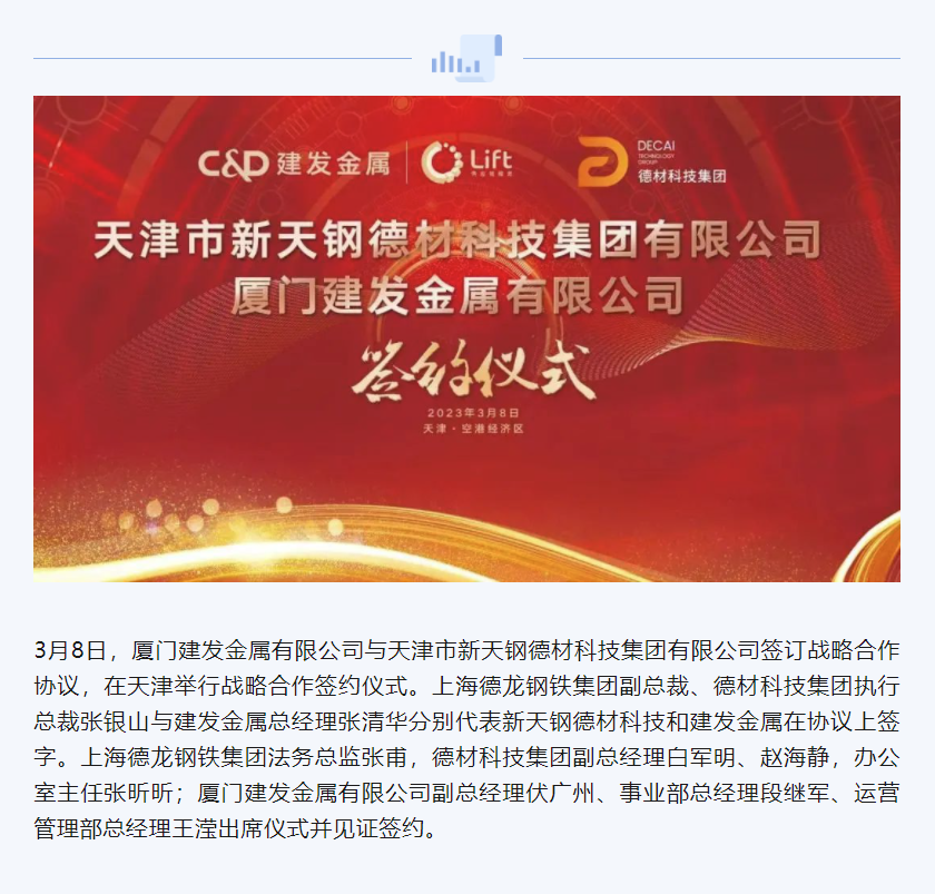 協同共進 生生不息 | 建發金屬與新天鋼德材集團簽訂戰略合作協議