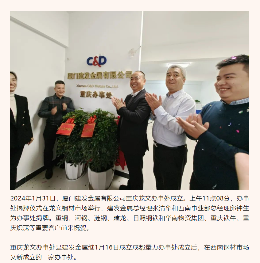 建發金屬獲評2023年度三鋼集團“卓越客戶”榮譽稱號