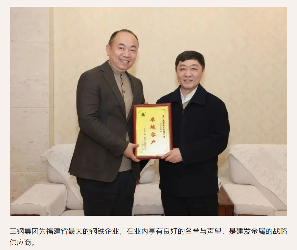 建發金屬獲評2023年度三鋼集團“卓越客戶”榮譽稱號